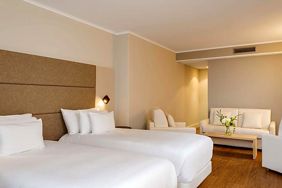 Junior Suite with terrace is 463 square feet and includes either a king-size bed 150-183 width or 2 single beds 80-130 width plus desk, satellite tv , hairdryer, tea and coffee making facilities , safe, bathrobes, and slippers and is Wheelchair-accessible.